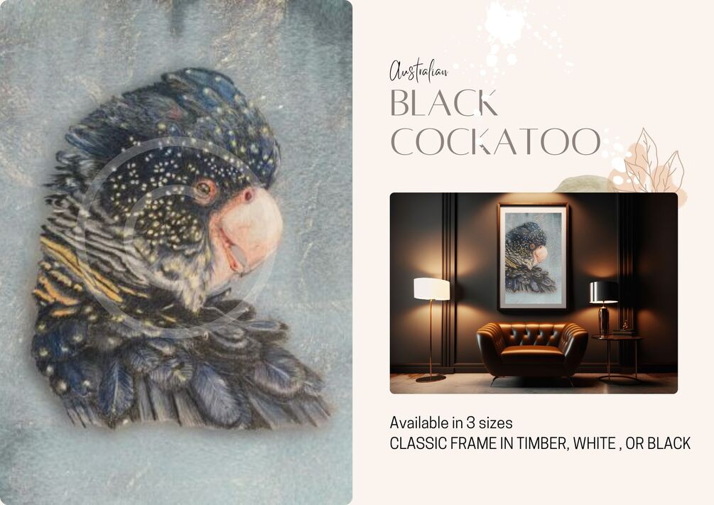 Add a touch of elegance and nature to your space with our stunning Limited Edition Black Cockatoo artwork. Meticulously handcrafted using professional artist colour pencils, this original piece captures the beauty and essence of these majestic birds. Whether you're looking to decorate your home, kids' room, or office, our Black Cockatoo artwork is the perfect choice.