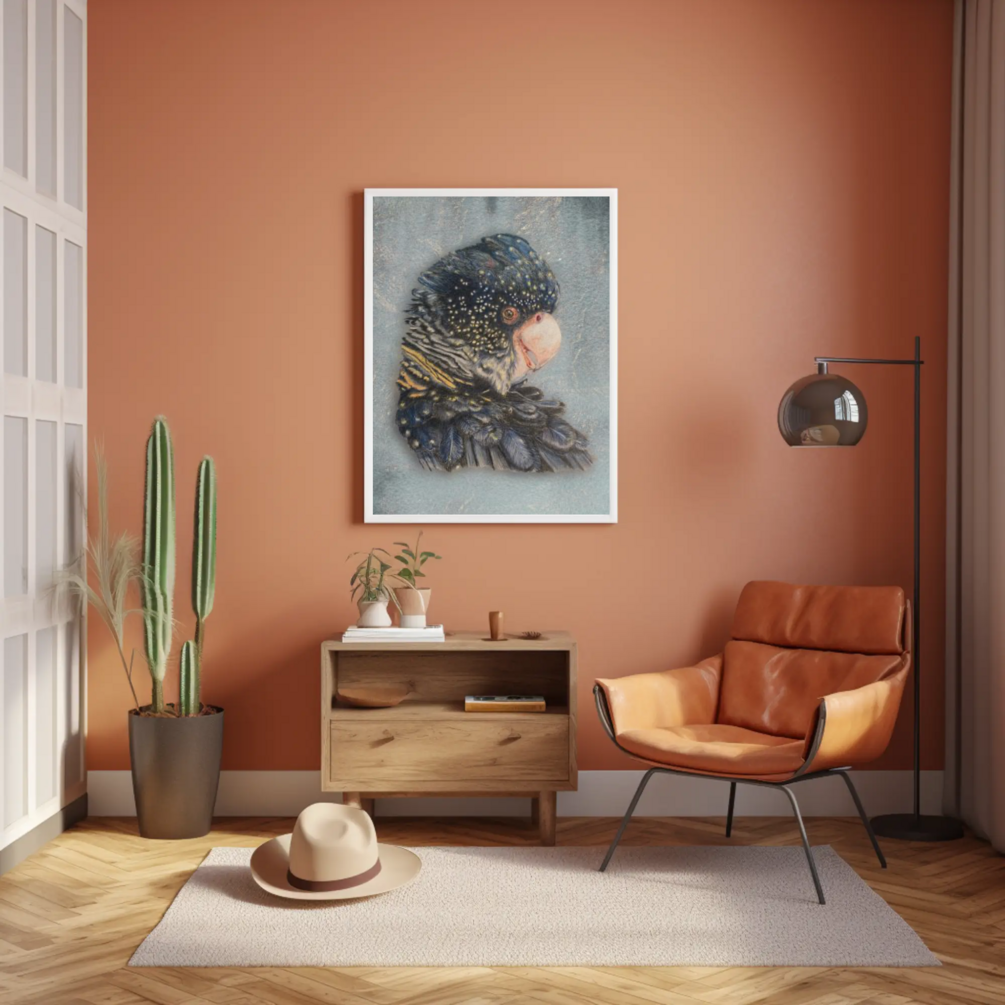 Australian Black Cockatoo Framed Print- limited edition
